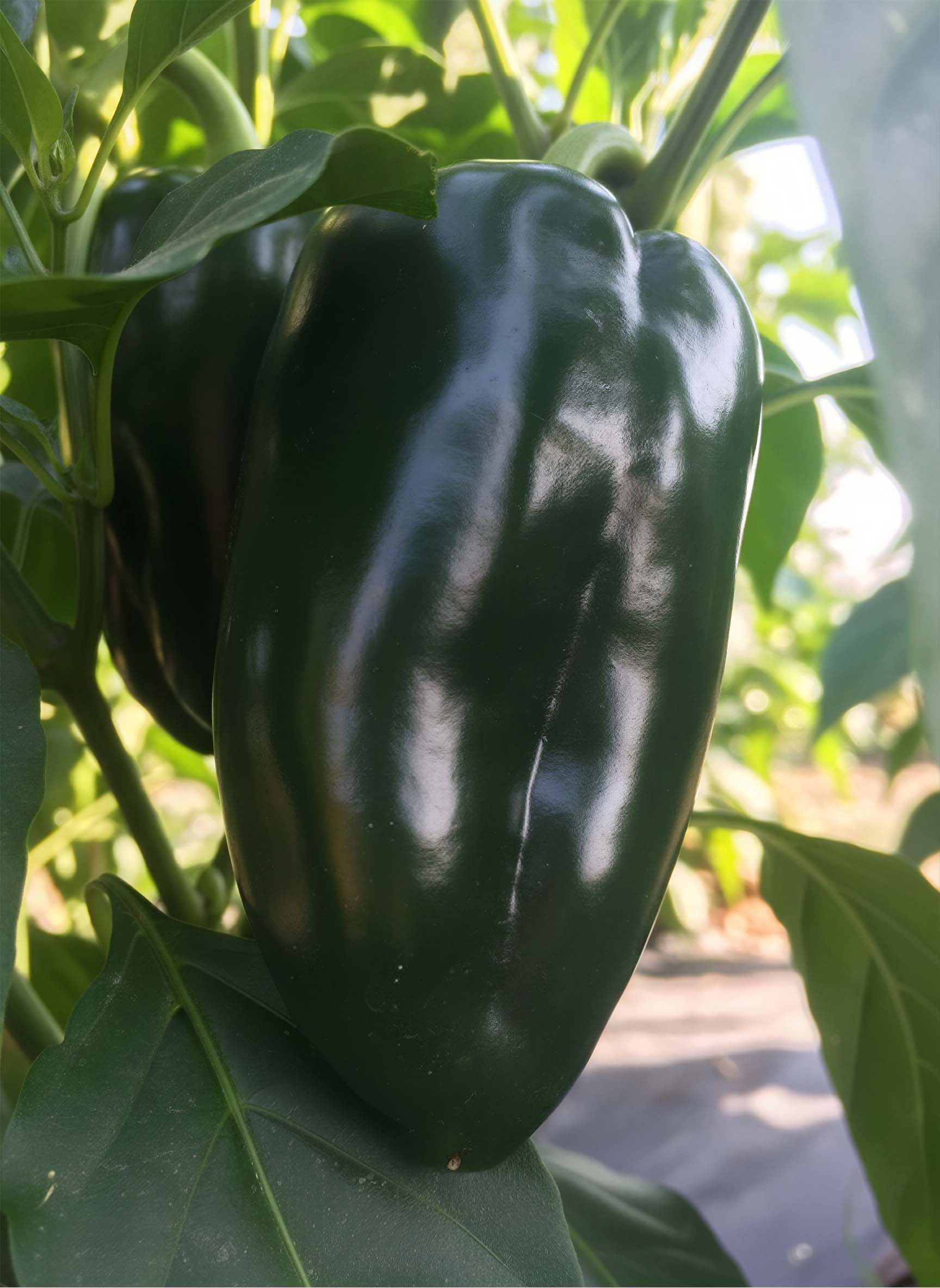 Gros piments vert foncé de type ''Poblano''