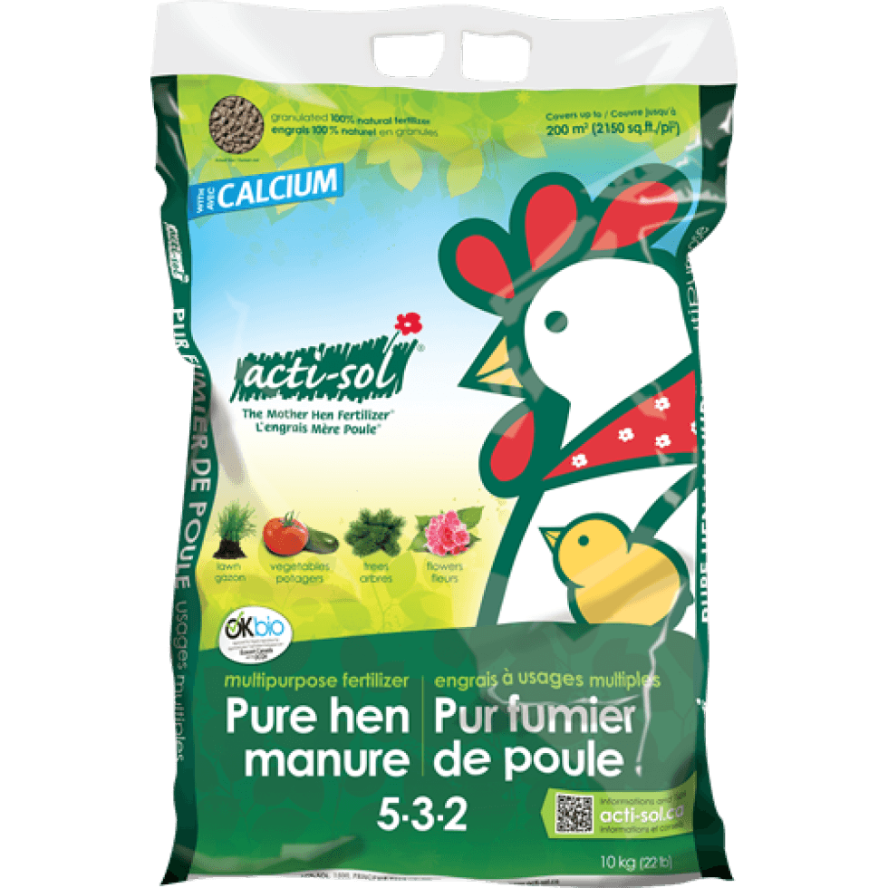 100% fumier de poule. Fertilisant naturel passe-partout pour la pelouse, le potager, les fleurs, les arbres fruitiers ou les haies.